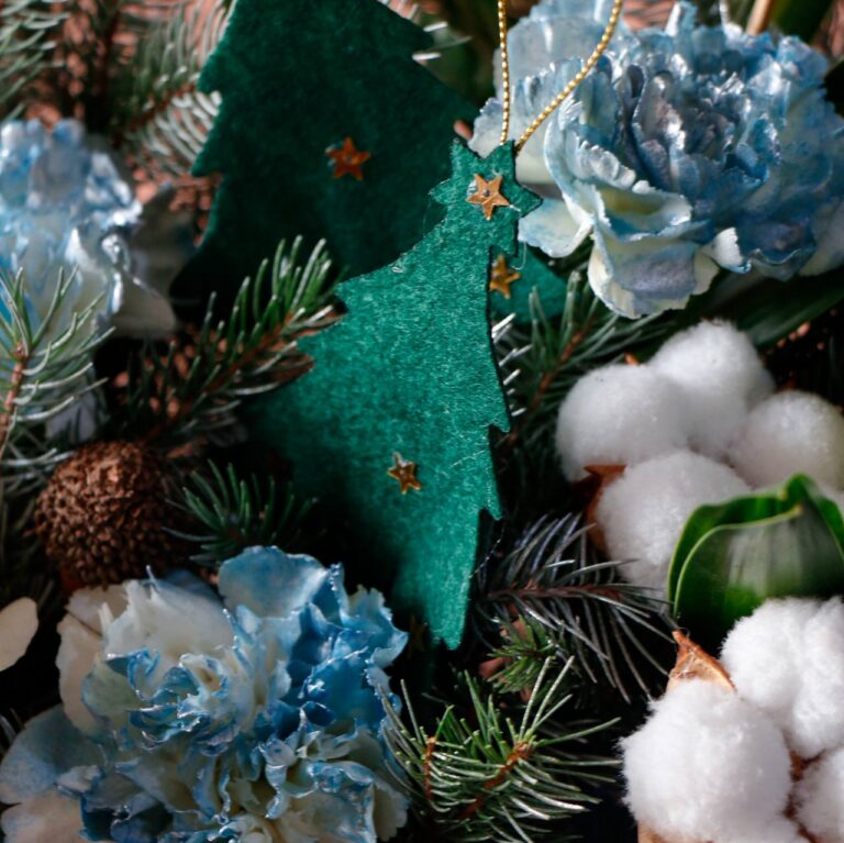 باکس گل کریسمس به همراه عروسک بابانوئل