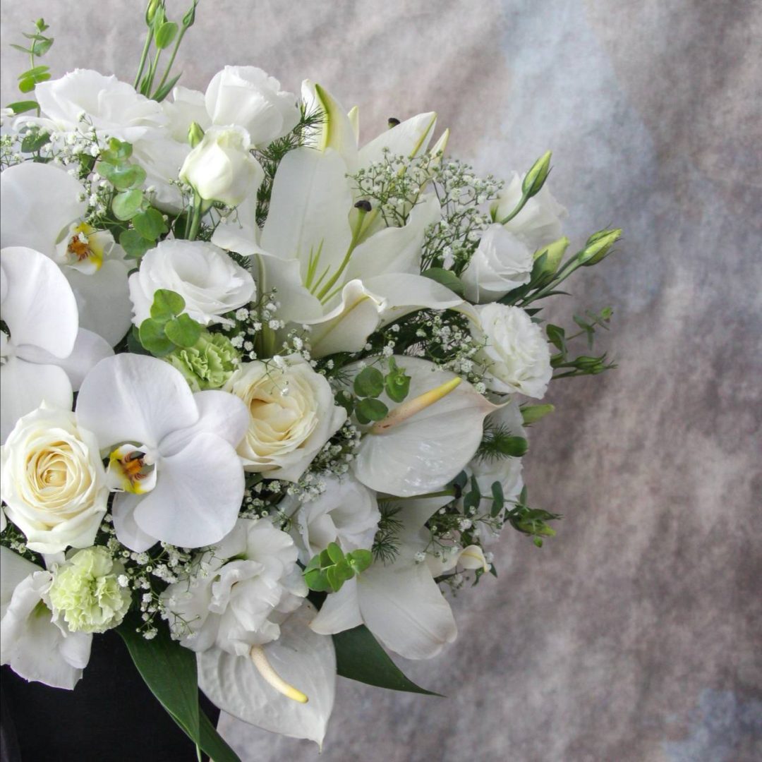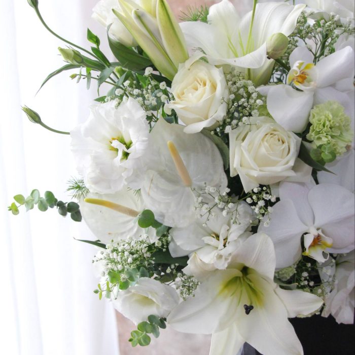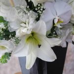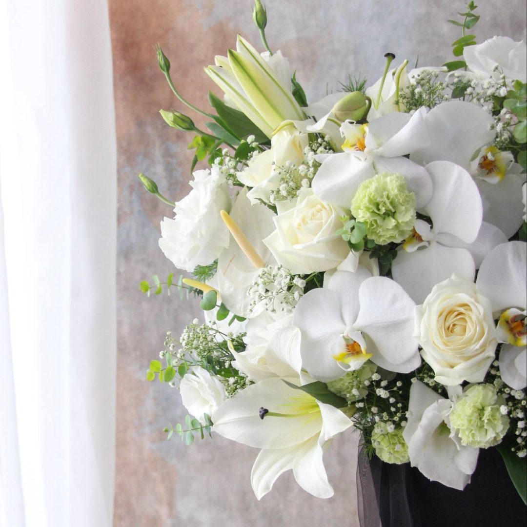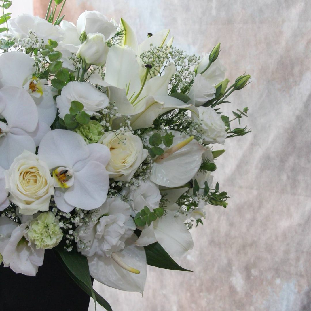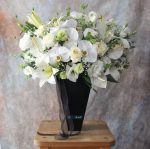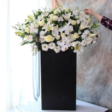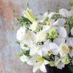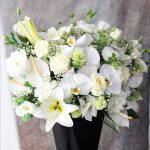گلدان ارکیده سفید همراه با گلدان شیشهای