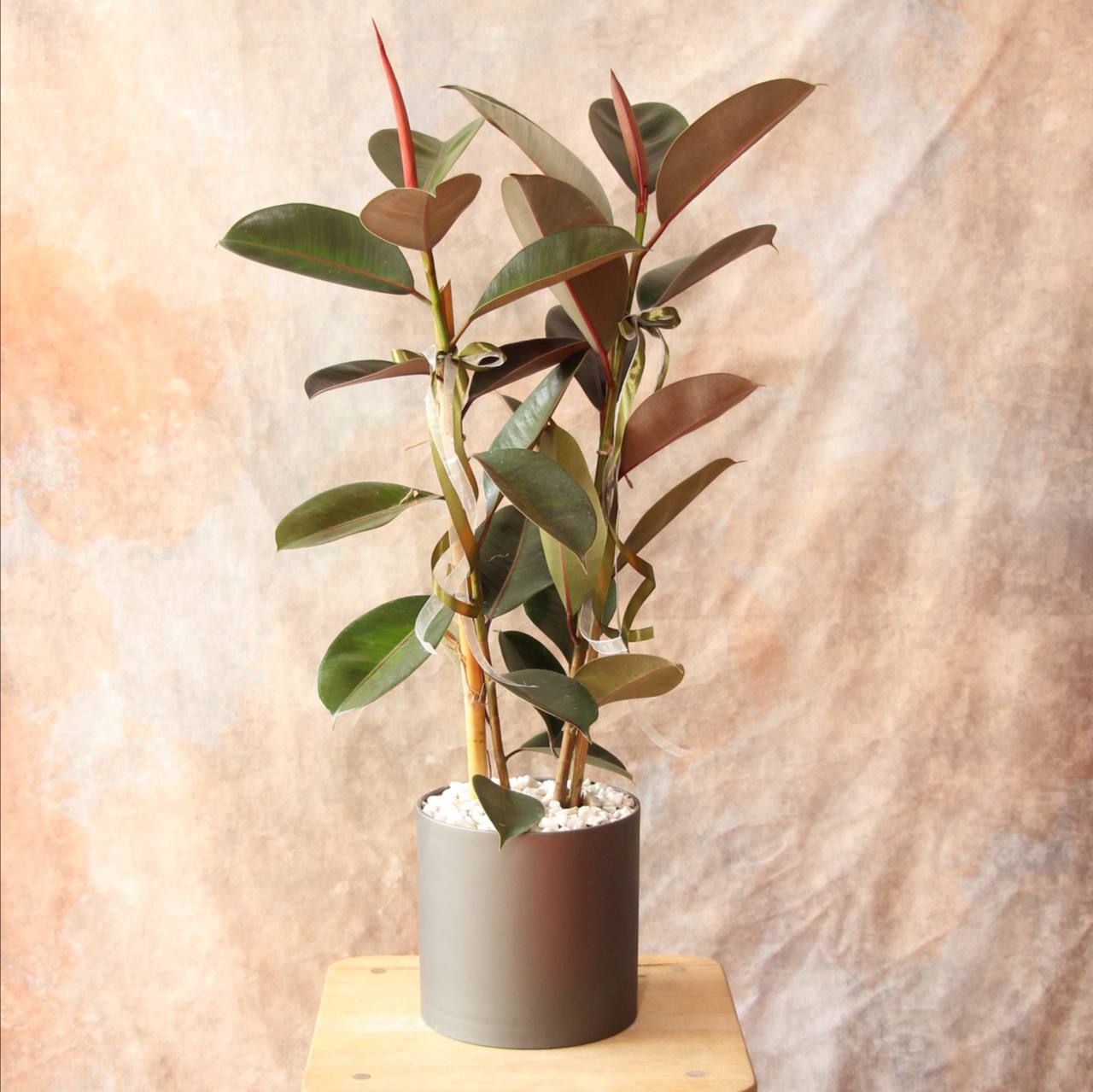 گلدان فیکوس شرابی دو شاخه همراه با گلدان پلیمری