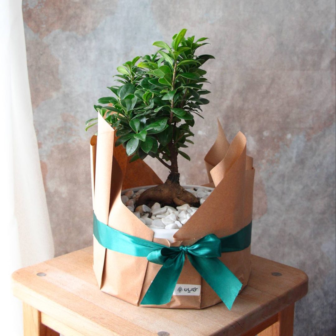 گلدان بونسای جنسینگ بزرگ همراه با گلدان سرامیکی
