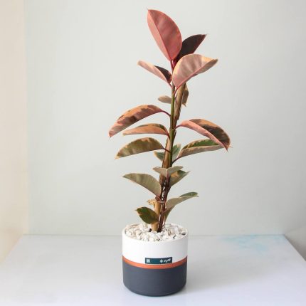 گلدان فیکوس شرابی همراه با گلدان سرامیکی