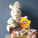 - به همراه شکلات M&M، پاستیل، آبمیوه و عروسک خرگوش