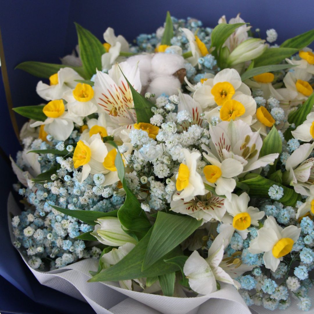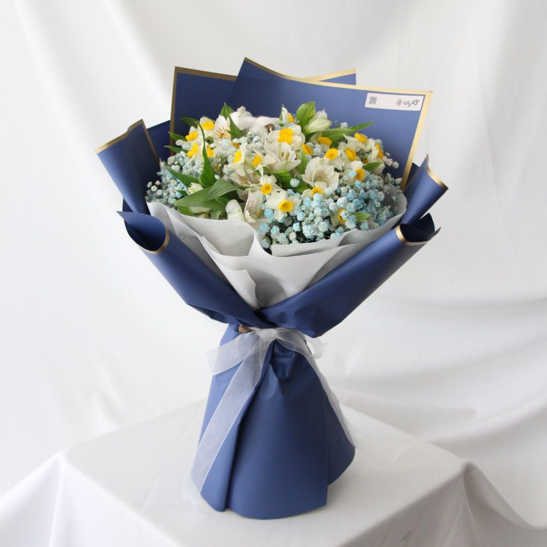 دسته گل نرگس و رز مینیاتوری مدل آسمین