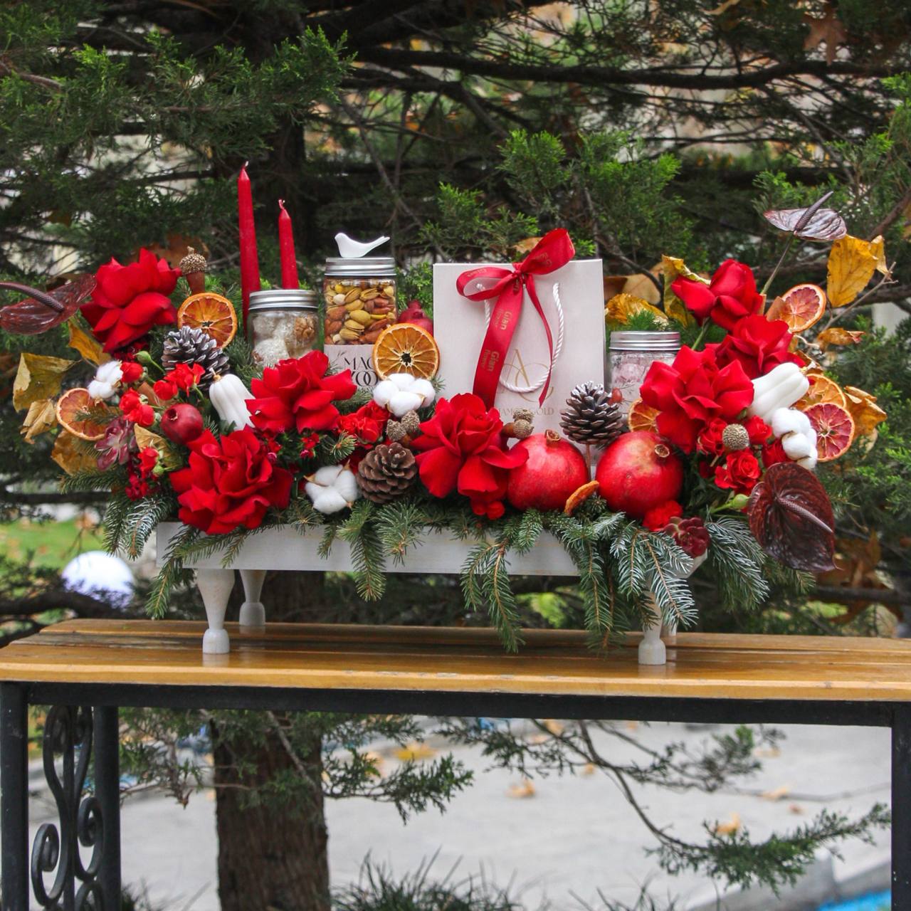 –کاج و انار خشک و بلوط و پرنده سرامیکی و انار سرامیکی