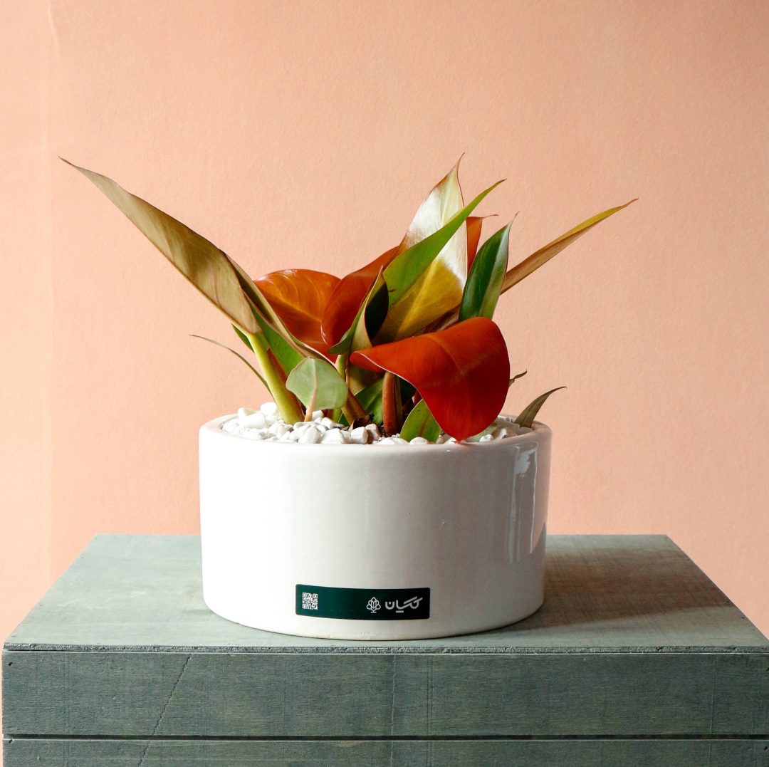 فیلودندرون پرتقالی با گلدان سرامیکی