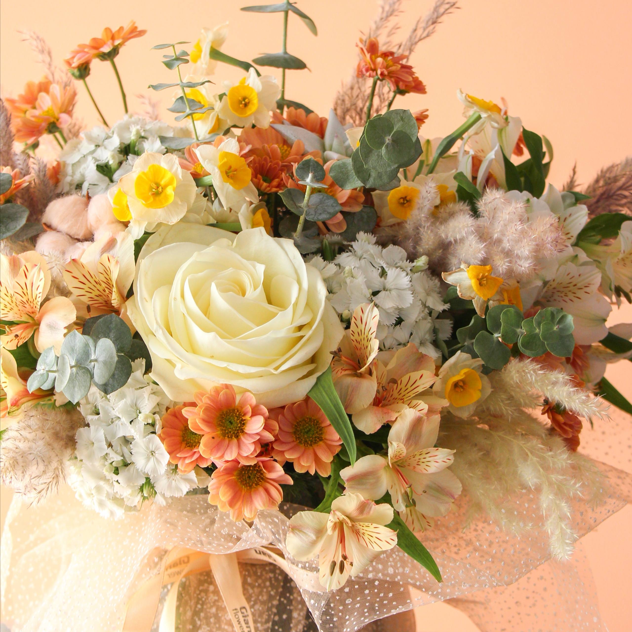 ما برای حفظ کیفیت محصولات گیان، گلها را به صورت روزانه تهیهی میکنیم، این امکان وجود دارد که دستهگل شما دارای گلها یا رنگهای کمی متفاوت از چیدمان تصویر باشد. هر دستهگل یک اثر هنری دستساز است که فقط به هدف انتقال مهر و قدردانی برای کسی که دوستش دارید آماده میشود. ما قول می دهیم که در هنگام تحویل، به همان اندازه تازه، زیبا و دوستداشتنی خواهد بود!
