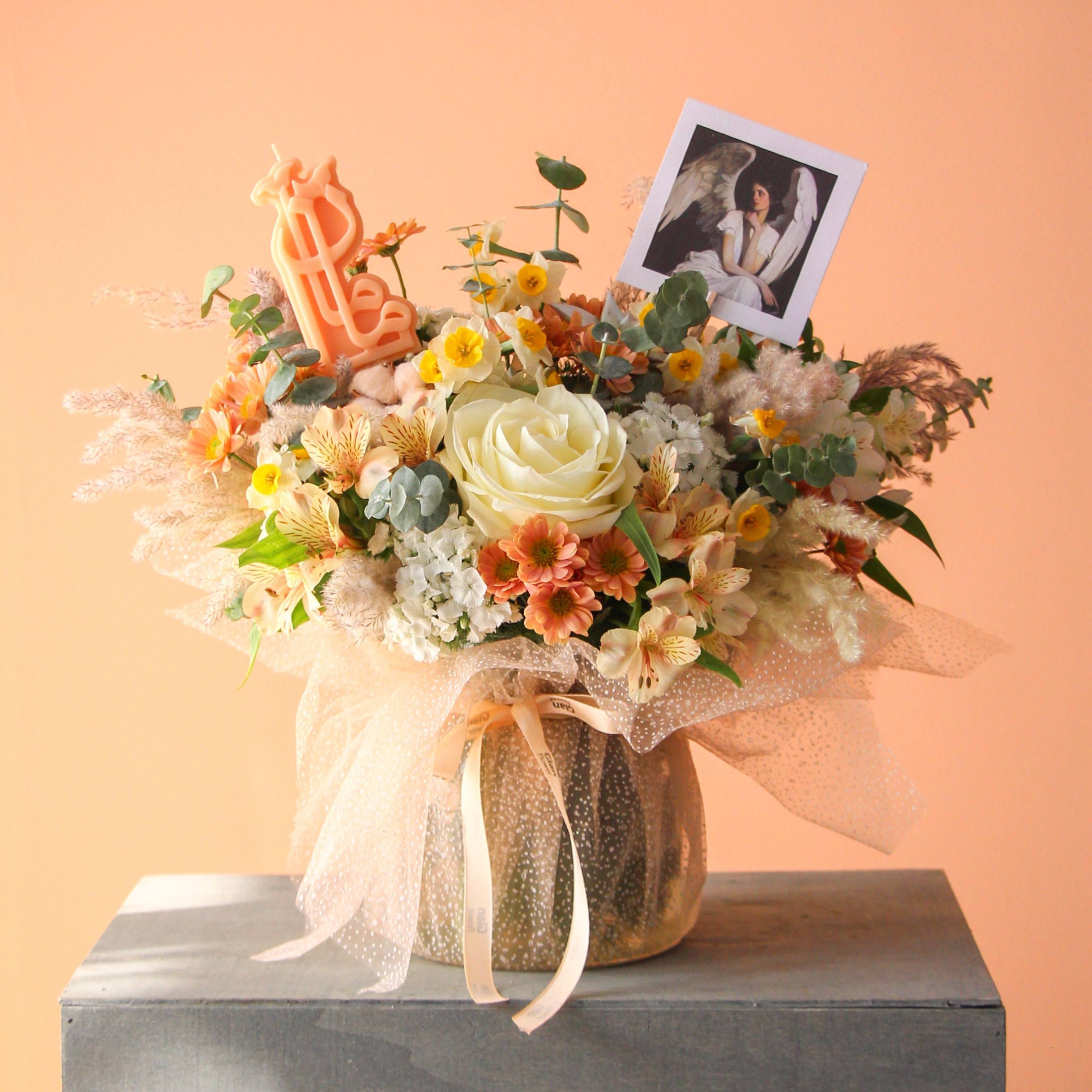 - شمع به همراه گلدان ارسال میشود. کارت یادداشت به صورت سفارشی ارسال میشود.