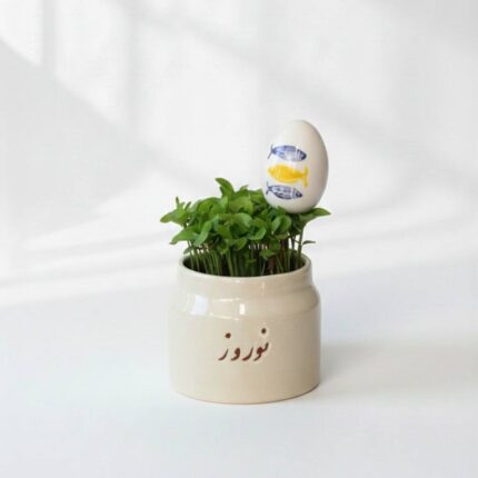 گلدان سرامیکی سبزه با طرح نوروز