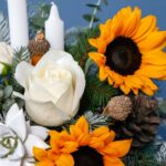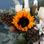 گلدان شیشهای آفتابگردان و رز هلندی بوژانه