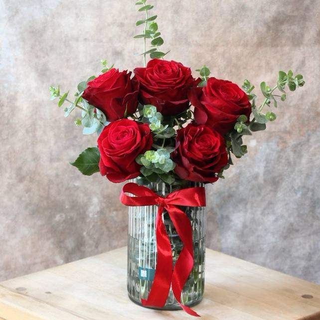 گلدان شیشهای رز قرمز مدل آهیر