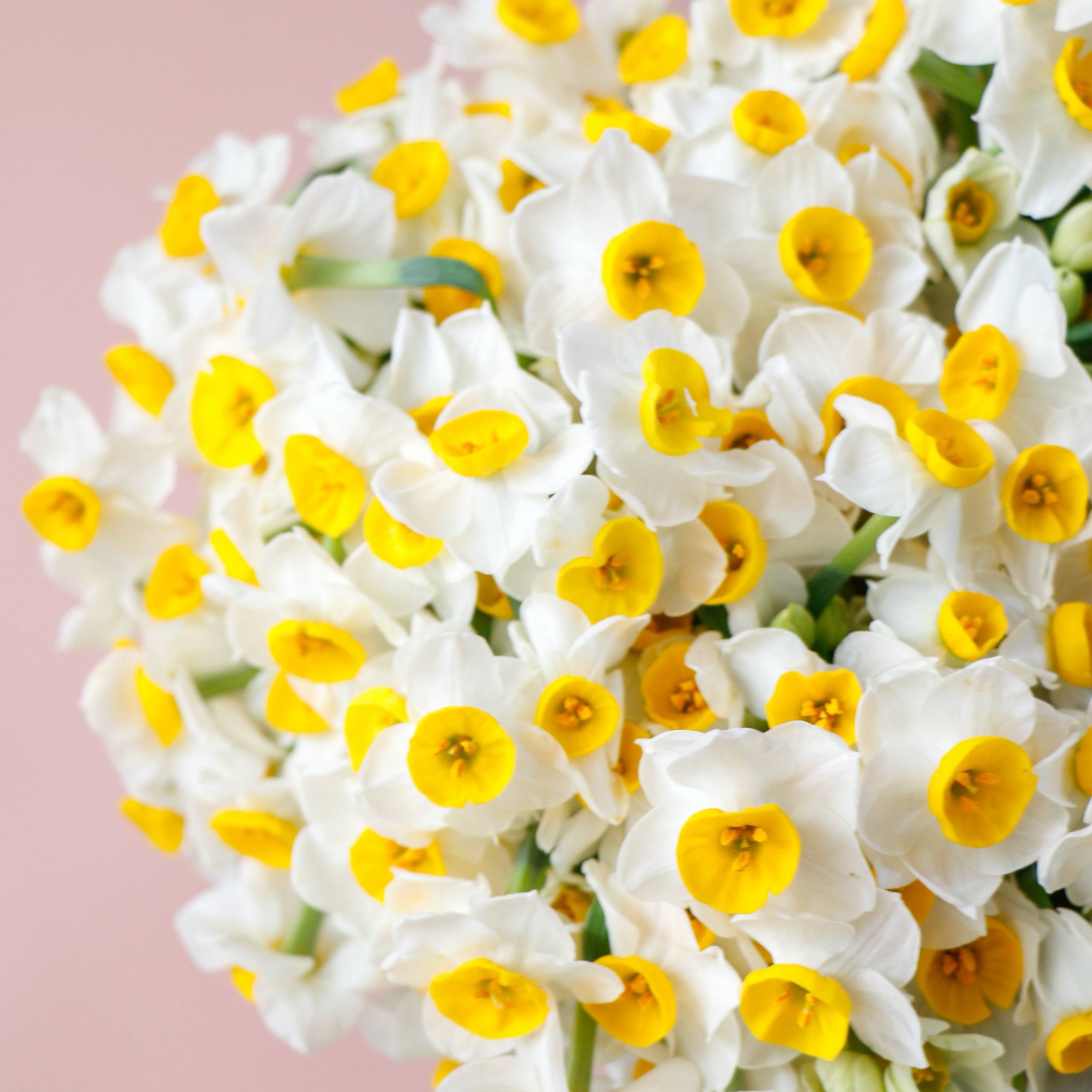 ۱۰۰ شاخه نرگس به همراه کلدان شیشهای