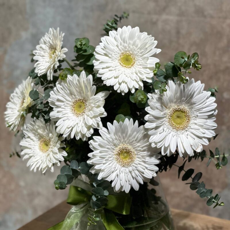 ۵۰ شاخه ترگس به همراه گلدان شیشهای