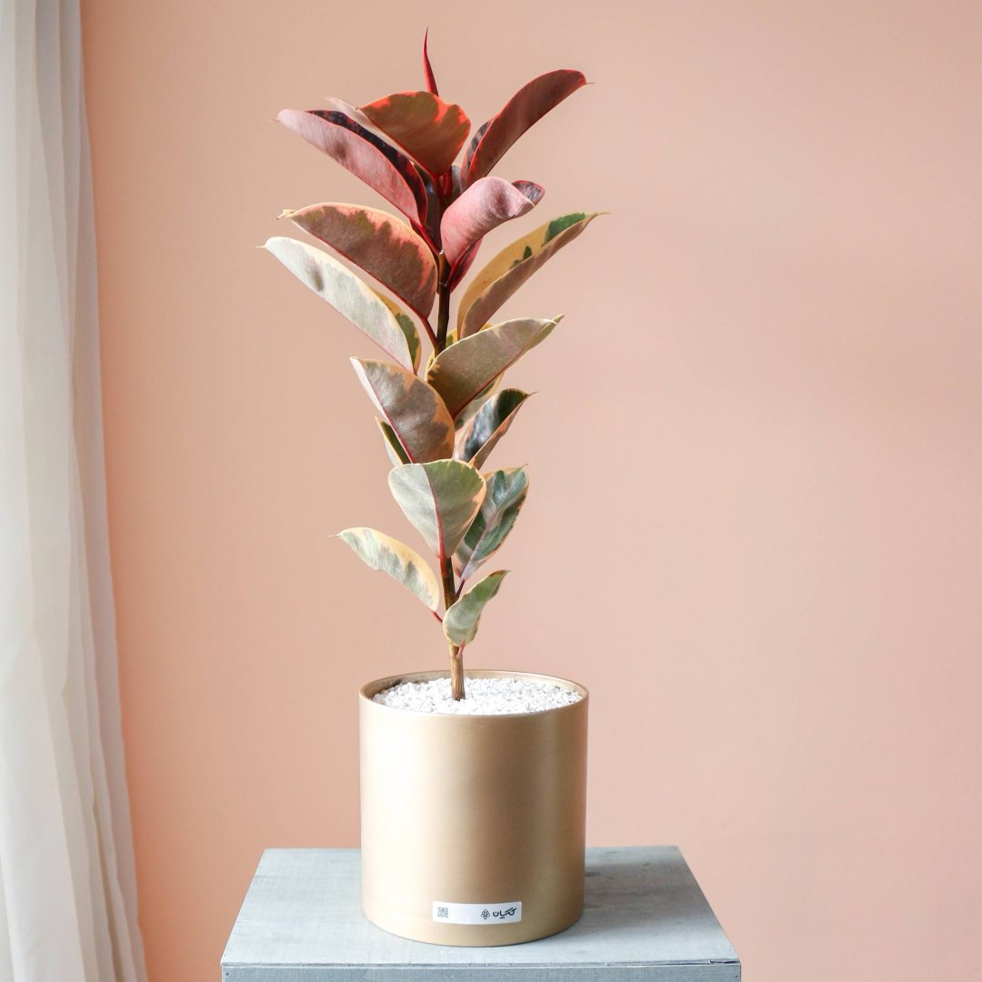 گلدان فیکوس شرابی متوسط همراه با گلدان پلیمری