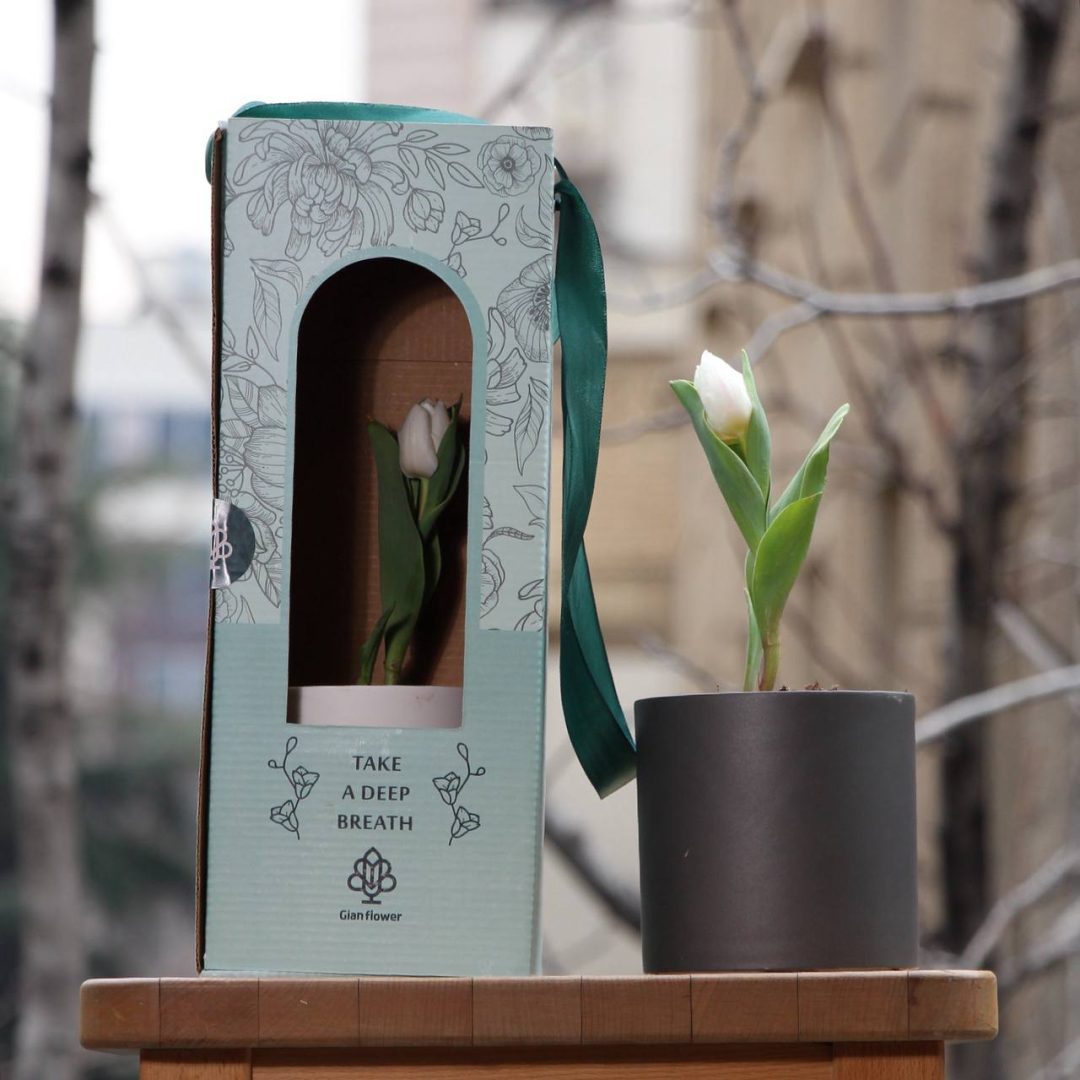 گلدان لاله سفید همراه با گلدان پلیمری در پکیجینگ شماره ۲