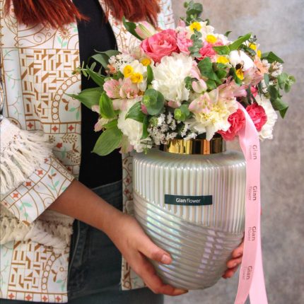 ما برای حفظ کیفیت محصولات گیان، گلها را به صورت روزانه تهیهی میکنیم، این امکان وجود دارد که دستهگل شما دارای گلها یا رنگهای کمی متفاوت از چیدمان تصویر باشد. هر دستهگل یک اثر هنری دستساز است که فقط به هدف انتقال مهر و قدردانی برای کسی که دوستش دارید آماده میشود. ما قول می دهیم که در هنگام تحویل، به همان اندازه تازه، زیبا و دوستداشتنی خواهد بود!